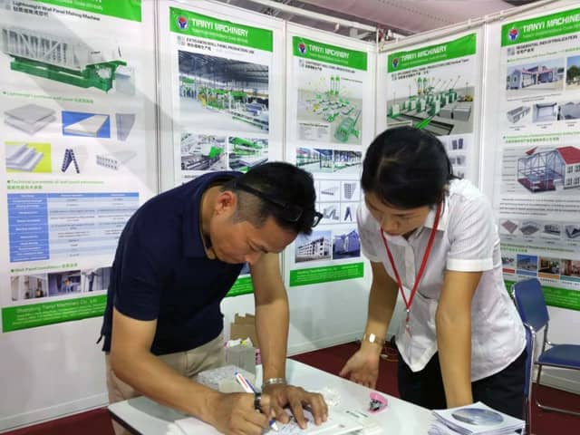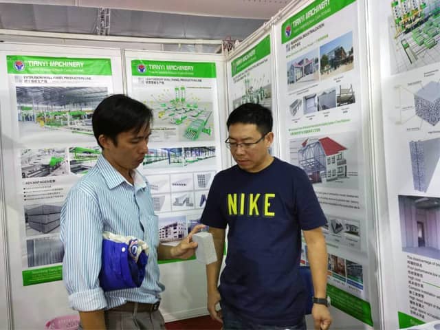 越南是亞洲經(jīng)濟(jì)發(fā)展速度的國(guó)家之一。近年來(lái),越南正加大對(duì)基礎(chǔ)設(shè)施建設(shè)和主要城市居民住宅的改造力度,綠色建筑建材裝備缺口巨大,為適應(yīng)市場(chǎng)需求,天意機(jī)械攜綠色建材設(shè)備參展了此次展會(huì)。展會(huì)期間,外貿(mào)銷(xiāo)售部李經(jīng)理,認(rèn)真對(duì)待每位來(lái)訪的客戶(hù),詳細(xì)向其介紹天意機(jī)械專(zhuān)利產(chǎn)品輕質(zhì)墻板生產(chǎn)線(xiàn),復(fù)合墻板生產(chǎn)線(xiàn),保溫裝飾一體化板生產(chǎn)線(xiàn)等產(chǎn)品的優(yōu)勢(shì),以及設(shè)備在東南亞地區(qū)建筑建材市場(chǎng)的影響,展會(huì)現(xiàn)場(chǎng)就有多數(shù)客戶(hù),初步簽訂了輕質(zhì)墻板生產(chǎn)線(xiàn)、復(fù)合墻板生產(chǎn)線(xiàn)加工生產(chǎn)訂單。
