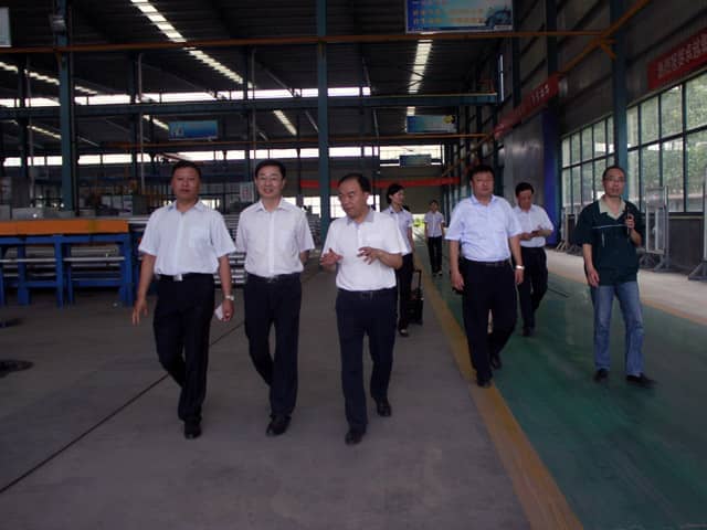 市領(lǐng)導(dǎo)先后參觀了我公司的6A辦公大樓、省級(jí)研究中心、體驗(yàn)館、樣板別墅、集成房屋、設(shè)備生產(chǎn)車間以及鋁型材加工基地。每到一處,市領(lǐng)導(dǎo)都仔細(xì)詢問(wèn)了技術(shù)與生產(chǎn)等相關(guān)問(wèn)題。