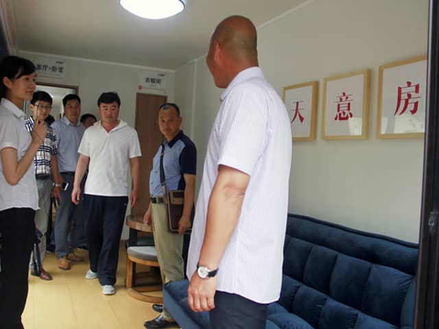 緊接著,參觀了天意樣板別墅、集成房屋、設(shè)備生產(chǎn)車間、鋁型材加工基地。專家領(lǐng)導(dǎo)團(tuán)對我公司擁有的先進(jìn)助力建筑垃圾廢棄物資源化利用的擠壓墻板生產(chǎn)線給予了高度評價。