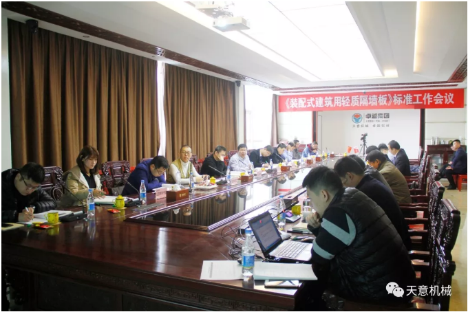 2018年11月17日,CBMF《裝配式建筑用輕質(zhì)隔墻板》標(biāo)準(zhǔn)工作會議在天意機械三樓多功能會議中心隆重召開。出席本次會議主要領(lǐng)導(dǎo)有建筑材料工業(yè)技術(shù)監(jiān)督研究中心主任王桓、天意機械董事長暨中國循環(huán)經(jīng)濟墻材革新工作委員會會長劉洪彬以及行業(yè)內(nèi)專家、學(xué)者等20余人。